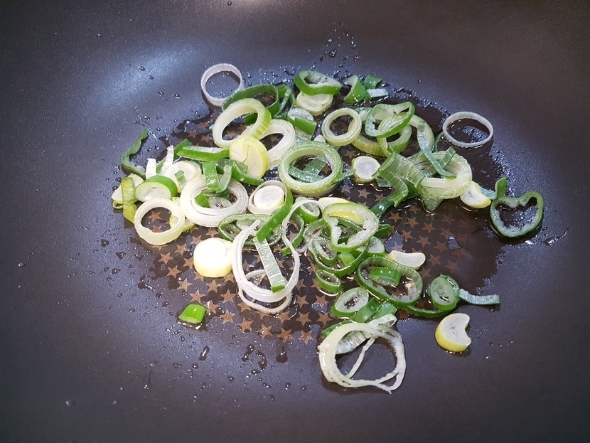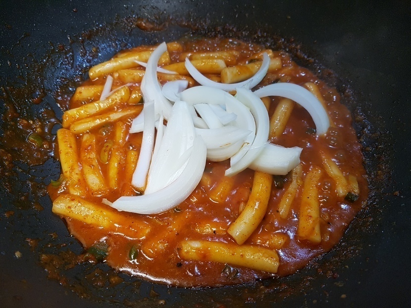 ์ํ 1/2๊ฐ๋ฅผ ๋ฃ๊ณ ๋ณถ์ ๋ค์ ์ด๋ฌต๊ณผ ์ถ๊ฐ๋ก ์ก์ 150ml๋ฅผ ๋ฃ๊ณ ๋์ฌ์ฃผ์ธ์.