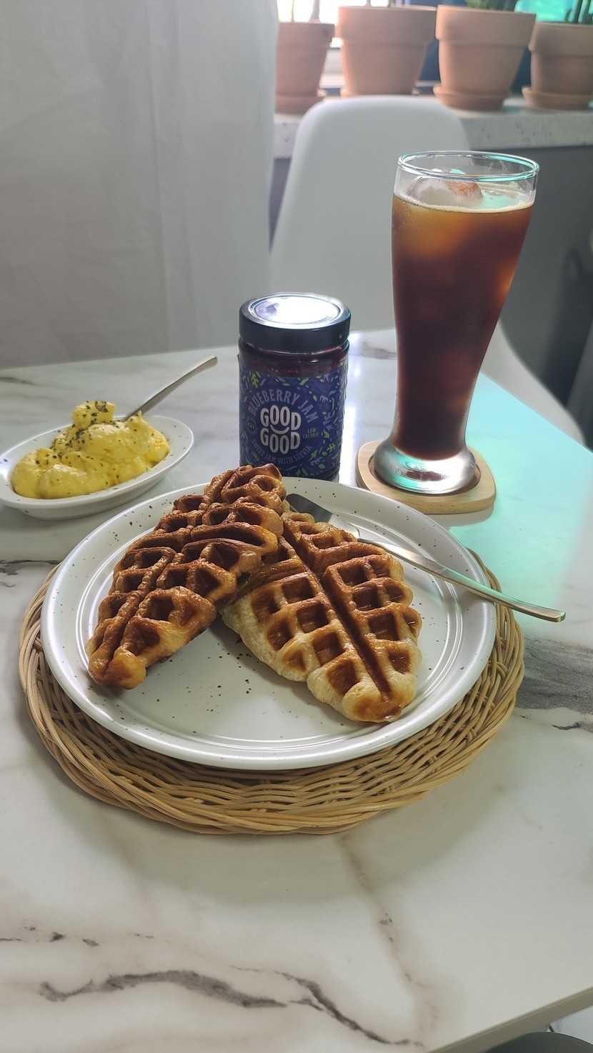 홈카페 오픈💛🩷🏡 크로플 구워서 냠냠🧇🧇🧇
