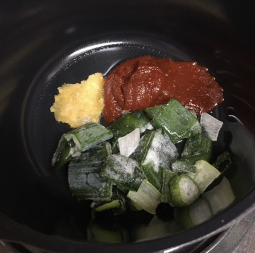 고추장 3스푼 마늘 반스푼 넣고 볶기