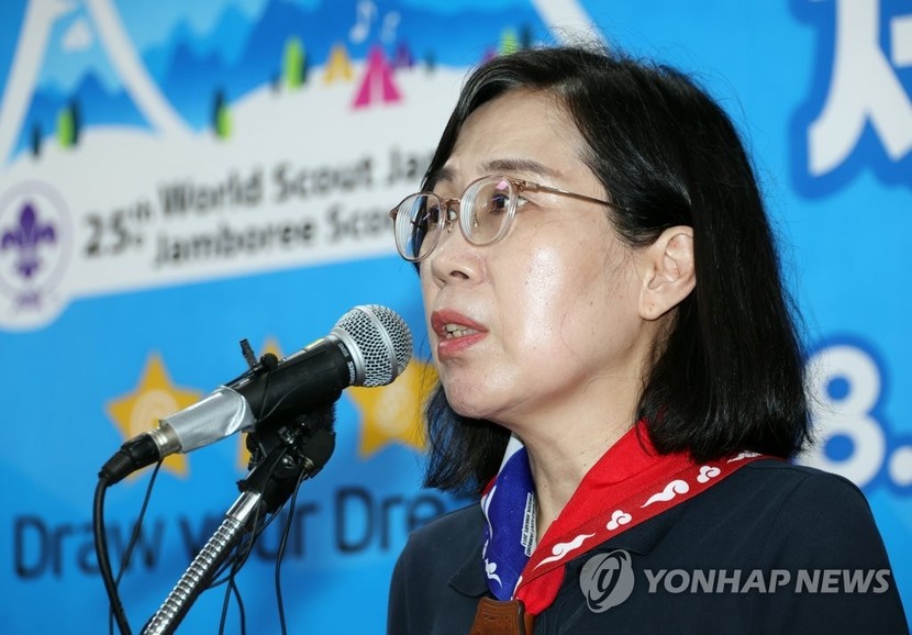 태풍 '카눈' 여파로 추가 발생한 비용에 대해서는 "아직 잔류 인원이 남아 있기 때문에 나중에 말씀드릴 수 있다"라고 했고, 한국스카우트연맹이 참가 규정을 어기고 초등학생 참여를 권유한 정황이 드러난 것에 대해서도 "여가부는 청소년 주무부처로서 아동·청소년 보호를 항상 중요하게 생각한다"라고만 말했다.
