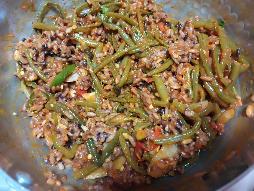 양푼에 밥 비볐어요