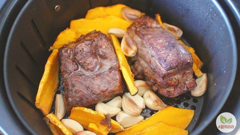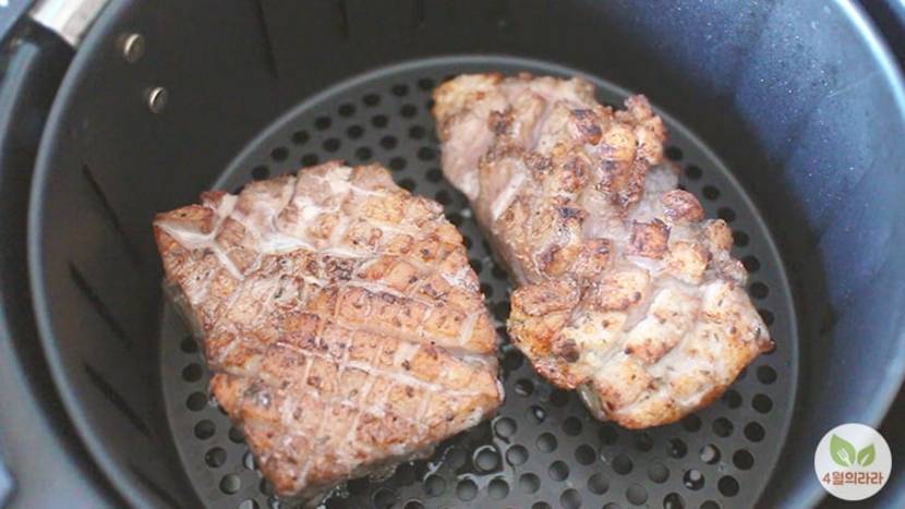 2. ์์ดํ๋ผ์ด์ด์ ๊ณ ๊ธฐ๋ฅผ ๋ฃ๊ณ 180๋์์ 15๋ถ ๊ฐ ๊ตฝ๊ณ , ๋ค์ง์ด์ 5๋ถ๊ฐ ๋ ๊ตฝ๋๋ค.