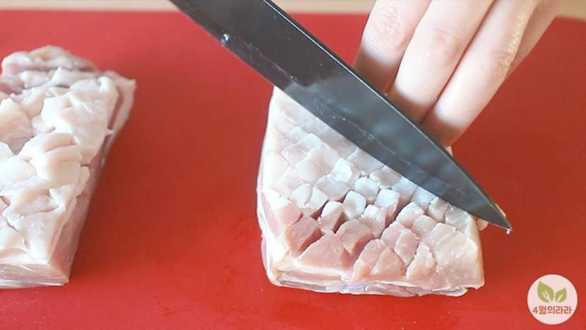 4. ๊ตฌ์ด ๊ณ ๊ธฐ๋ฅผ ์นผ๋ก ์ฐ์ด ๋ด๊ณ , ๋จํธ๋ฐ๊ณผ ๋ง๋, ์ฑ์๋ฅผ ๋ด๊ณ , ๋์ฅ๋๋ ์ฑ์ ๋ฟ๋ ค ๋ธ๋ค.