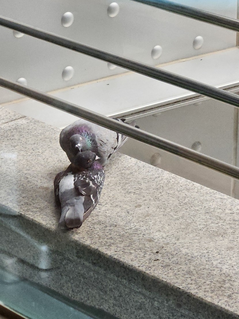 비도 오는데 창가에서 비둘기가 서로 ....