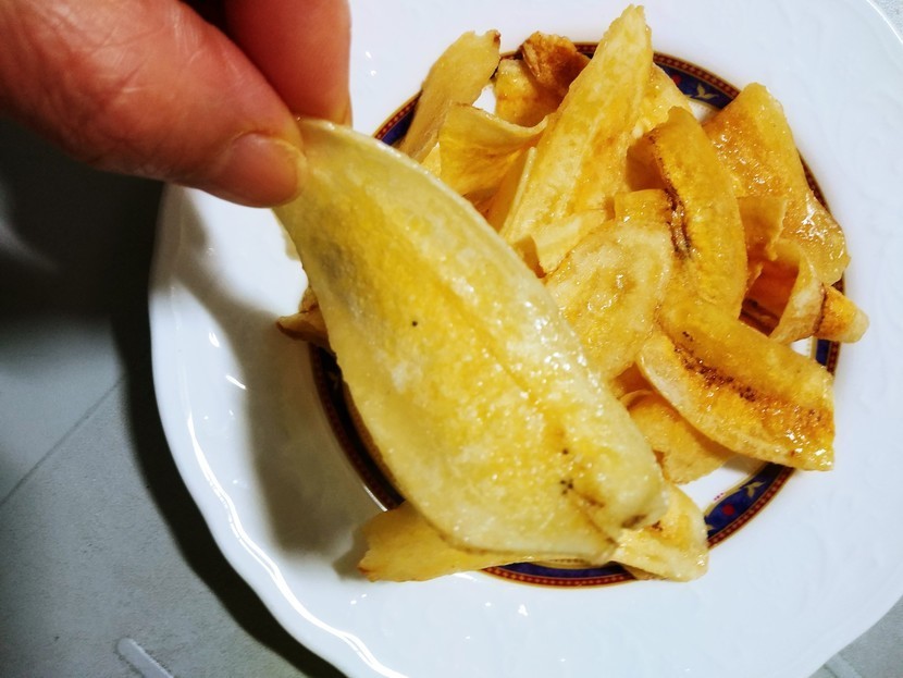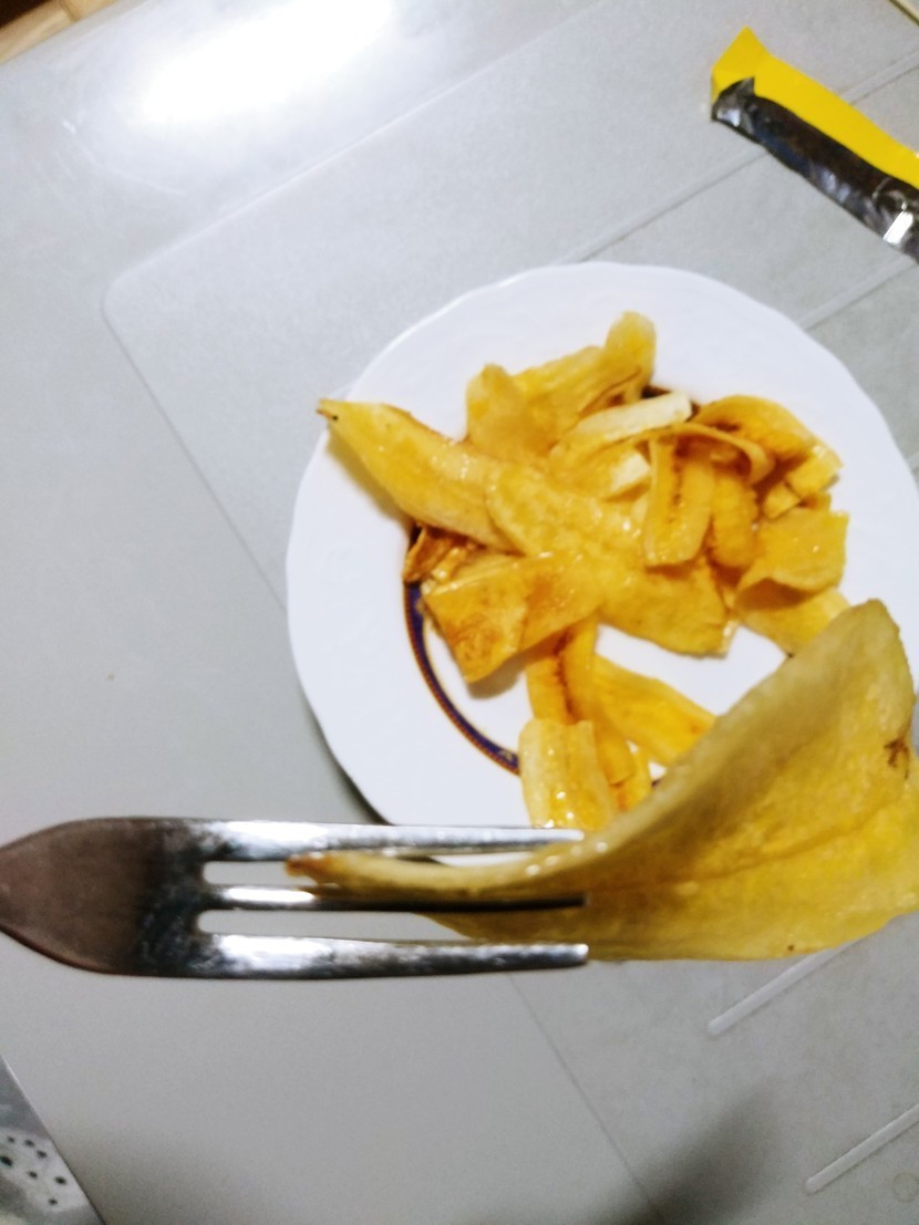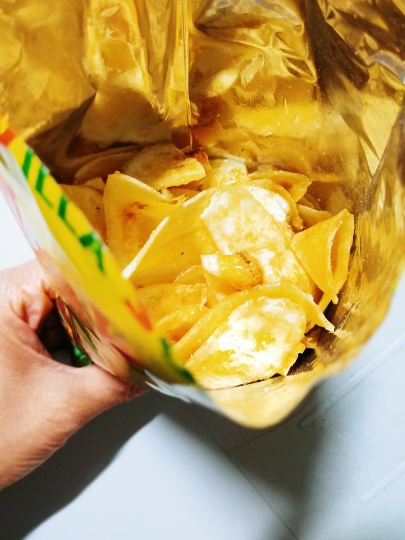 최근에 먹어 본 바나나칩이예요...아무 생각없이 하나 집어 먹다 순간 깜놀...기존의 바나나칩에 비해 너무 바사삭 바사삭...... 바삭함에 끝도없이 손이 가네요...앉은자리에서 순삭했어요.. 바삭바삭 부서지는 맛이 일품...어찌 이리 바삭할까 보니 슬림 슬림하더라고요. 기존의 바나나칩들은 바삭보다는 딱딱한 크런키한 느낌.. 이 아이는 칩형 과자들처럼 바사삭 하며... 입안에서 스르르 녹아드는것 같은 부드러움까지 갖췄네요...너무 달지도 않고 중간 중간 솔티한 맛도 있어요...솔티아이스크림 같은...슬림한 두께를 보여드리고 싶은데 잘 안보이는듯...일반 바나나칩이 있음 비교삿 찍기 좋은데 마침 이 아이밖에 없어서...이렇게 저렇게 찍어보았어요..과일용 작은 포크예요...칩이 들어가고도 공간이 하나는 끼워도 될정도 남네요..보시면 아시겠죠? 십원짜리 동전이예요...바나나칩 좋아하시는분 강추요...크리스피한 식감 좋아하시는 분들에게도 안성맞춤일듯해요..