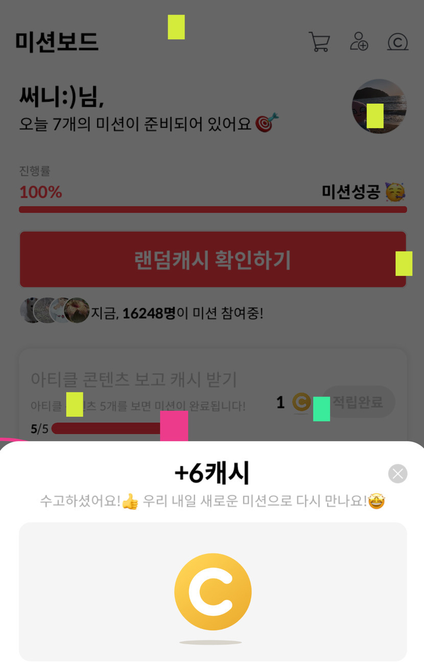23.09.13 156 읽음 미션보드 써니:) 구독하기 16 17 콘텐츠의 수익 3 #미션보드 #6캐시어제는 너무 피곤해서 캐피 못함오늘은 늦게퇴근이라 미리 후다닥모두 행복한 하루 보내세요!!ㅎ근데 비 오는 거 너무 싫다요ㅠ 17 0 / 300 입력