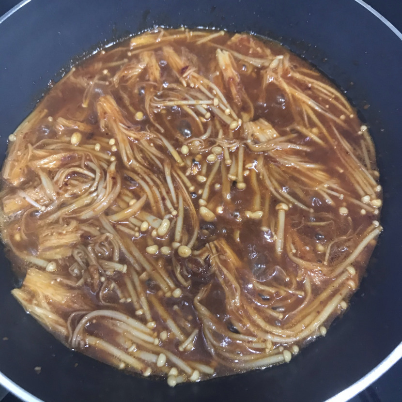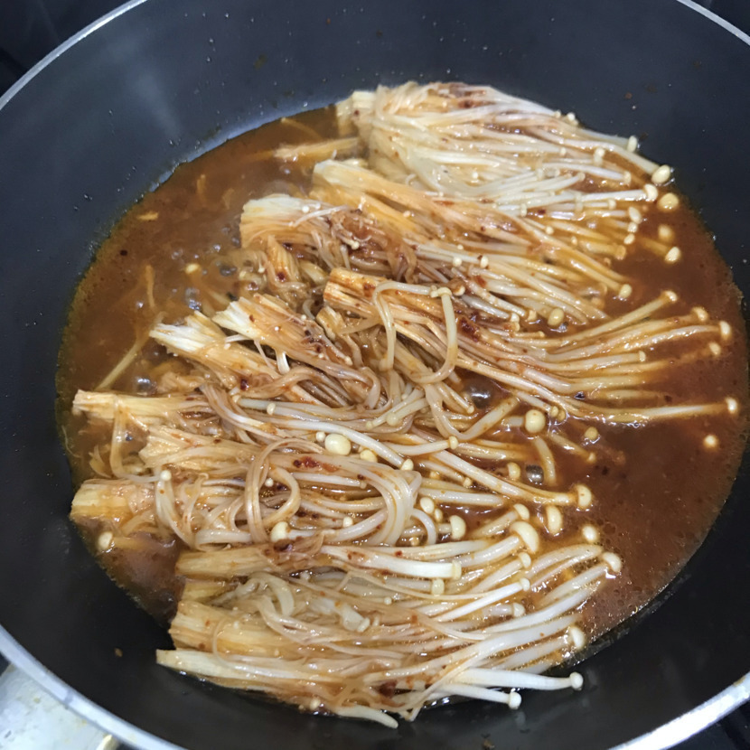 팽이버섯을 올린 후 조금 익혀주세요