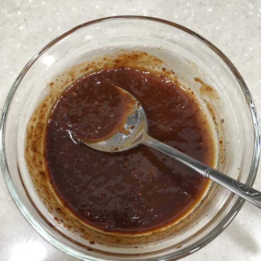 설탕은 반 숟갈 정도 , 다진마늘은 조금 , 물은 두 숟갈 넣어 줍니당 비율은 2 : 2 : 0.5 : 0.5 : 2