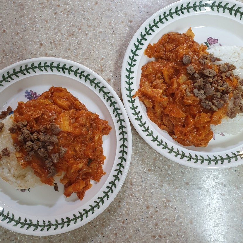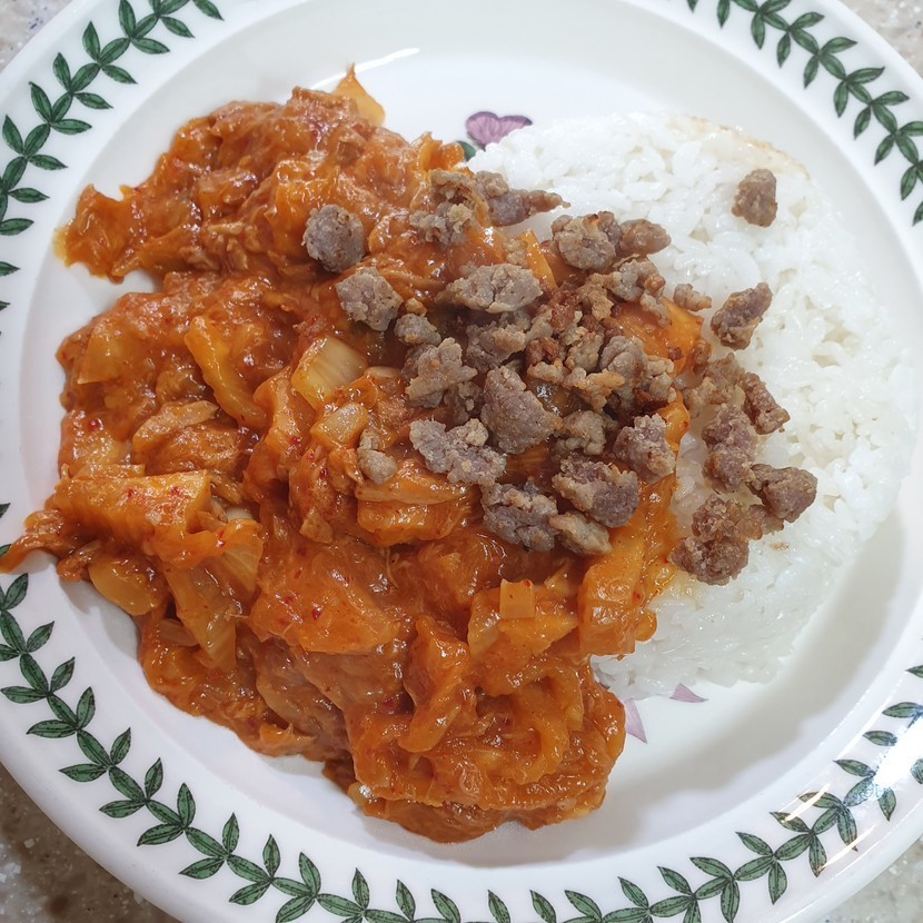 김치꼬다리로 덮밥은처음해보았는데