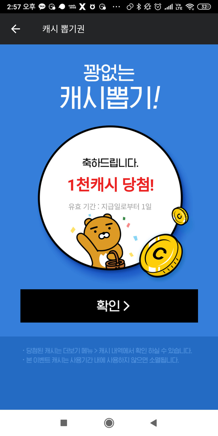 카카페 천원당첨..!!😆😍