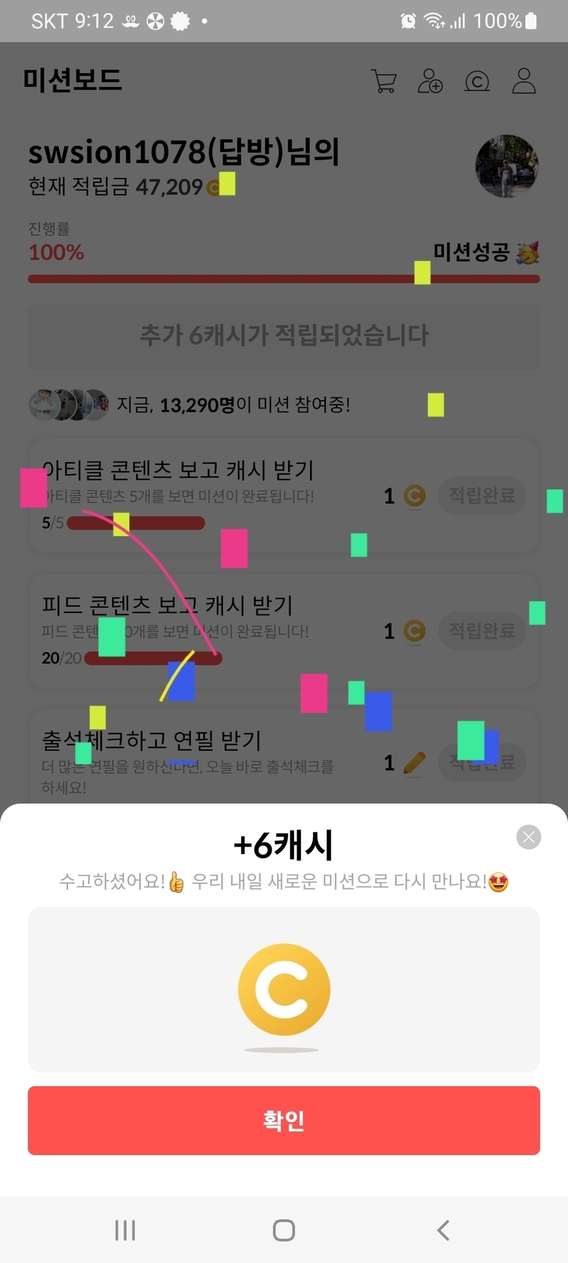 23.10.09 149 읽음 랜덤캐시,미션보드 미션완료!! swsion1078(답방) 구독하기 47 44 콘텐츠의 수익 4 10월9일(한글날) 랜덤캐시 미션완료 7캐시, 미션보드 미션완료 6캐시, 타로카드는 7캐시, 비디오시청은 9캐시 받았어요. 44 0 / 300 입력