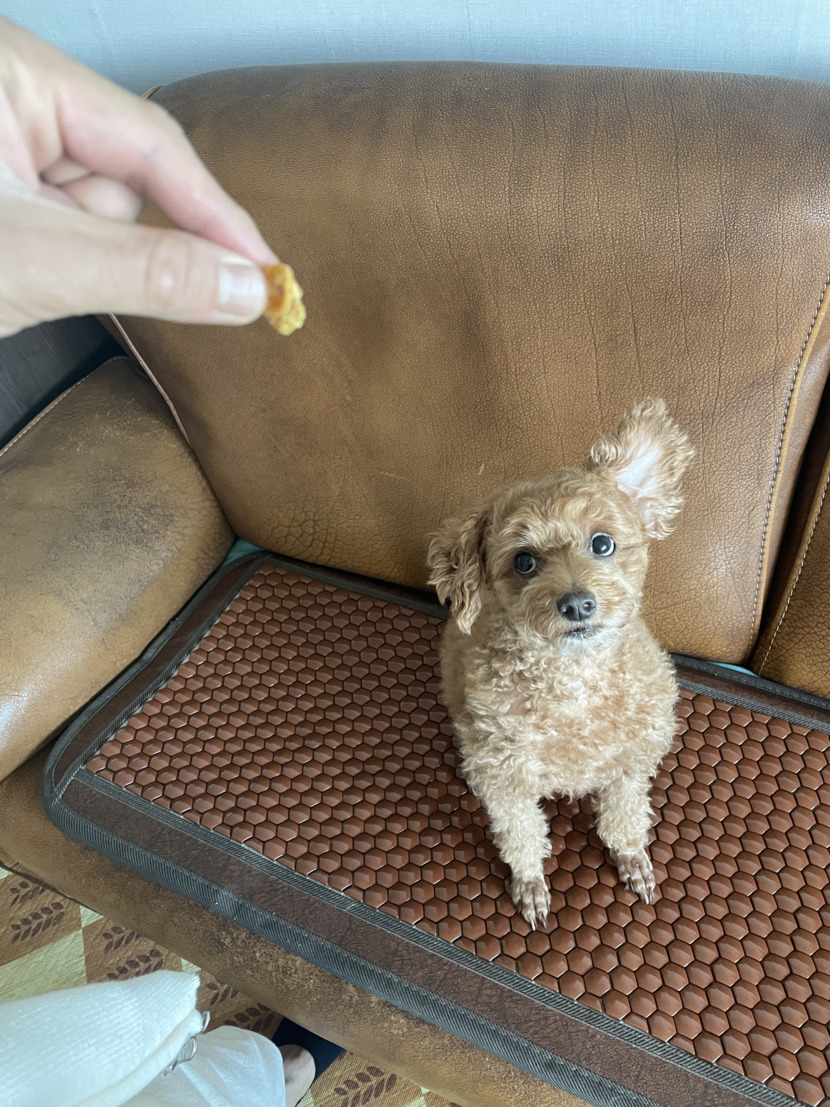 간식 하나 손에 들고 있으면 귀로 손드는 푸들..🥹