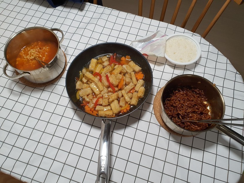 20.04.20 229 읽음 오늘의 요리 👀👅 jbr1013 구독하기 1 5 콘텐츠의 수익 20 점심 간식으로는 휴게소알감자🥔휴게소 알감자는 레시피대로 한거 같은데...망스멜..ㅜㅜ짜구..버터맛이 안나서 설탕 왕창 찍어먹었어유....저녁으로는 진짬뽕+두부탕수+짜파게티🍜한번에 세가지 요리(?)는 힘드네요😂진짬뽕 국물 많은건 안비밀....ㅋㅋ짜파게티에 불닭소스 뿌려 먹으니 매콤하니 더 맜나유👍두부 원래 안좋아하는데 요즘 두부강정,두부탕수,마파두부끼야 두부가 이렇게 맛있는 재료였나용!!!오늘도 나름 맛있게 냠냠😋 5 0 / 300 입력