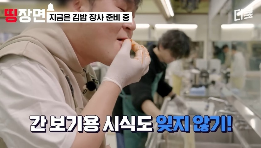 심지어 이들은 김밥 재료의 간을 본다는 핑계로 손으로 음식을 집어먹기도 했다. 특히 일부 장면에서는 위생 장갑이 입에 닿는 모습도 포착됐다.