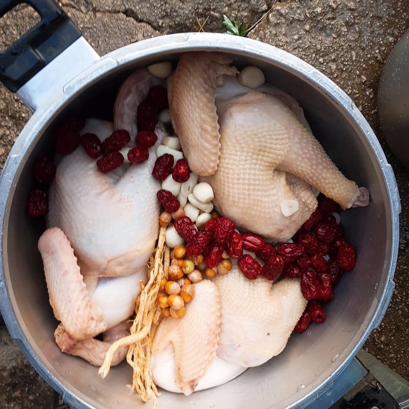 μ¬λ¬κ°μ§ μ¬λ£λ₯Ό λ£κ³ μ‘μλ₯Ό λ§λλλ€.