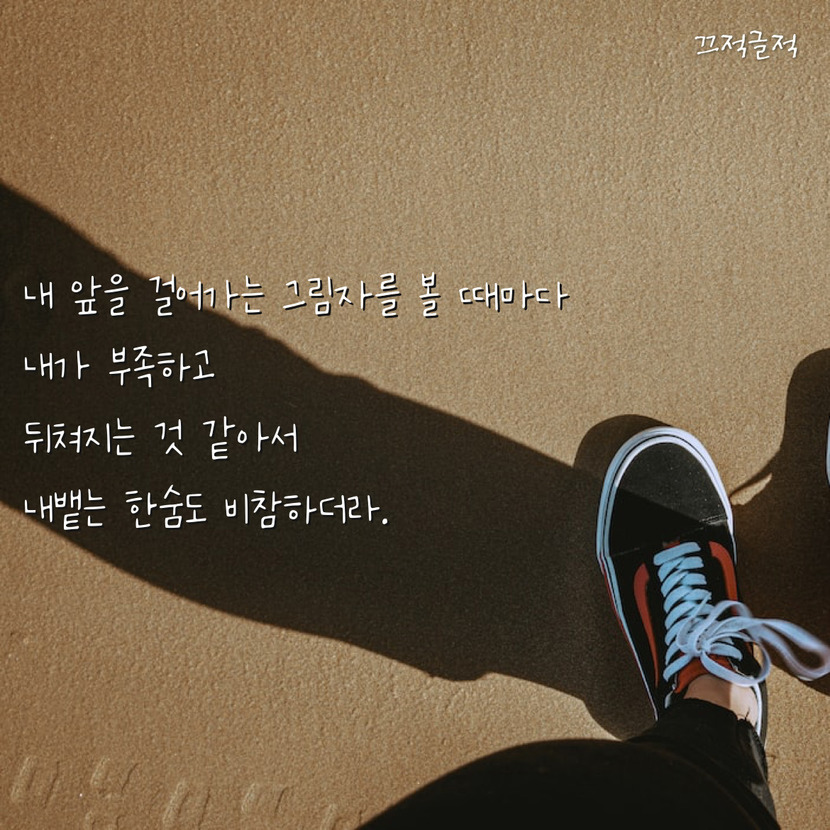 23.11.04 81 읽음 어깨의 짐이 너무 무거워 Aiona 구독하기 5 7 콘텐츠의 수익 3 일이 끝나고 집에 가는 길을 걷다보면 유독 제 그림자가 눈에 들어와요.저보다 앞서 걸어가는 모습에 제가 억지로 끌려가는 느낌도 들어요.그래도 버텨야죠…무단저장, 무단배포, 자작발언 금지. 7 0 / 300 입력