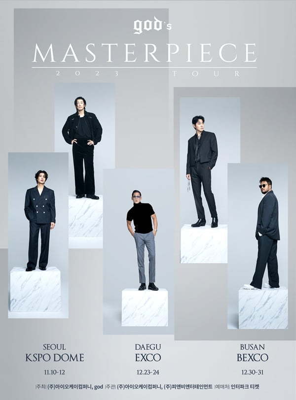god(지오디)는 서울 공연을 마친 후 오는 12월 23일부터 이틀간 대구 EXCO, 30일과 31일 부산 BEXCO에서 '2023 god TOUR 'god's MASTERPIECE' 공연을 이어간다.