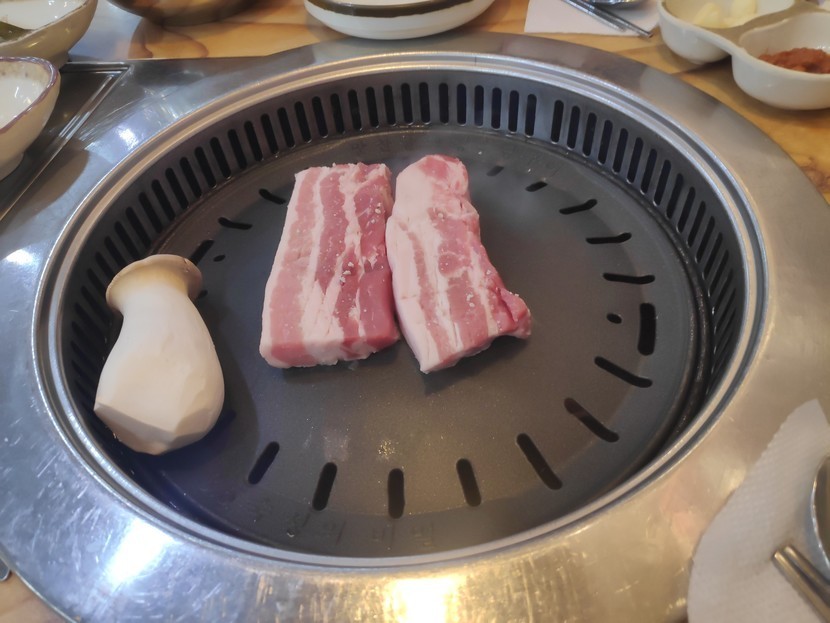 그리고 온도계를 재서 불판 온도를 맞춰서 본인들 말해 굽는 노하우로