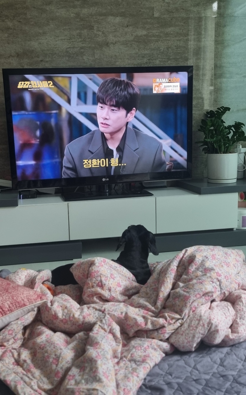 추운지 이불덮고 용감한 형사들 보는 봉자...
