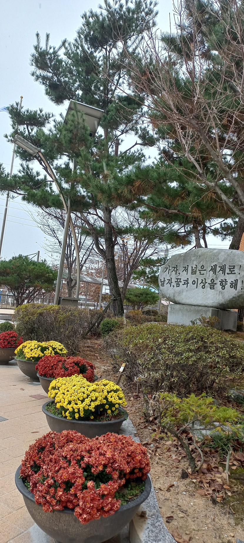첫눈에도 살아있는 국화꽃