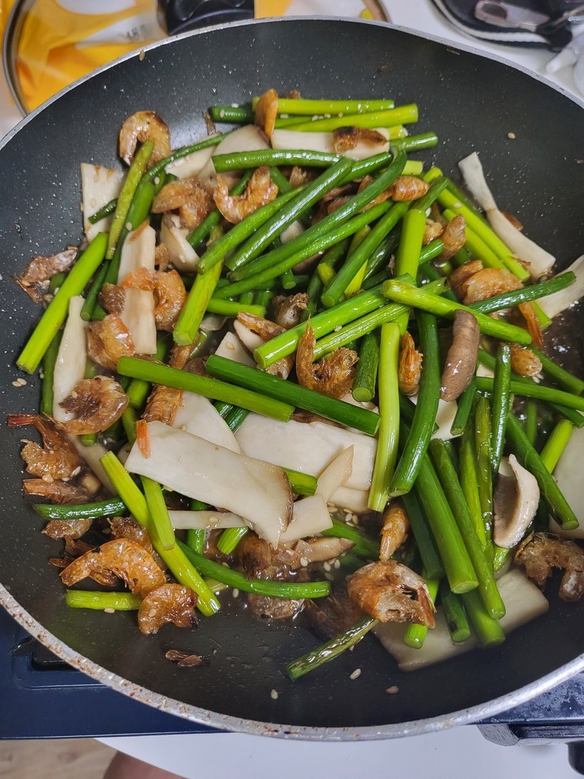 마늘쫑 건새우 버섯 볶음