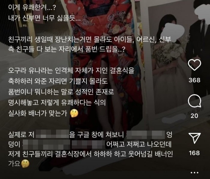 "품번 잊지마" 남의 결혼식 '선 넘은' 오구라 유나 등신대 등장에 네티즌 대통합