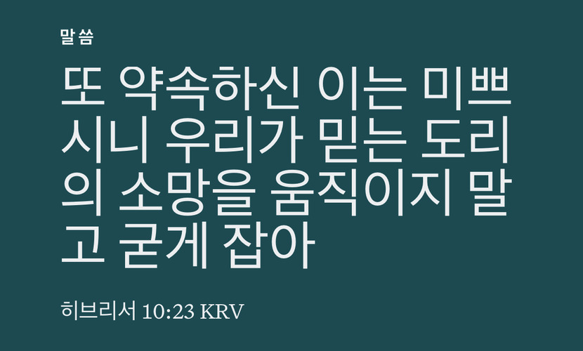 우리는 하나님이 신실하신 분임을 알기에 이 소망에 더욱더 매달려야 합니다. 포기하지 않는다면 하나님은 약속을 이루실 것입니다.