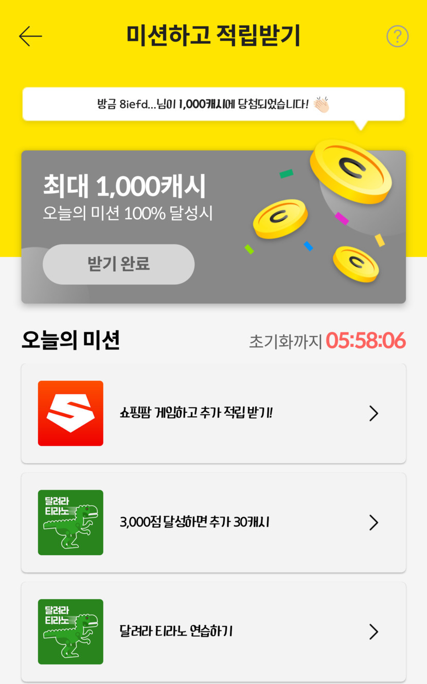 오늘의 미션 완료