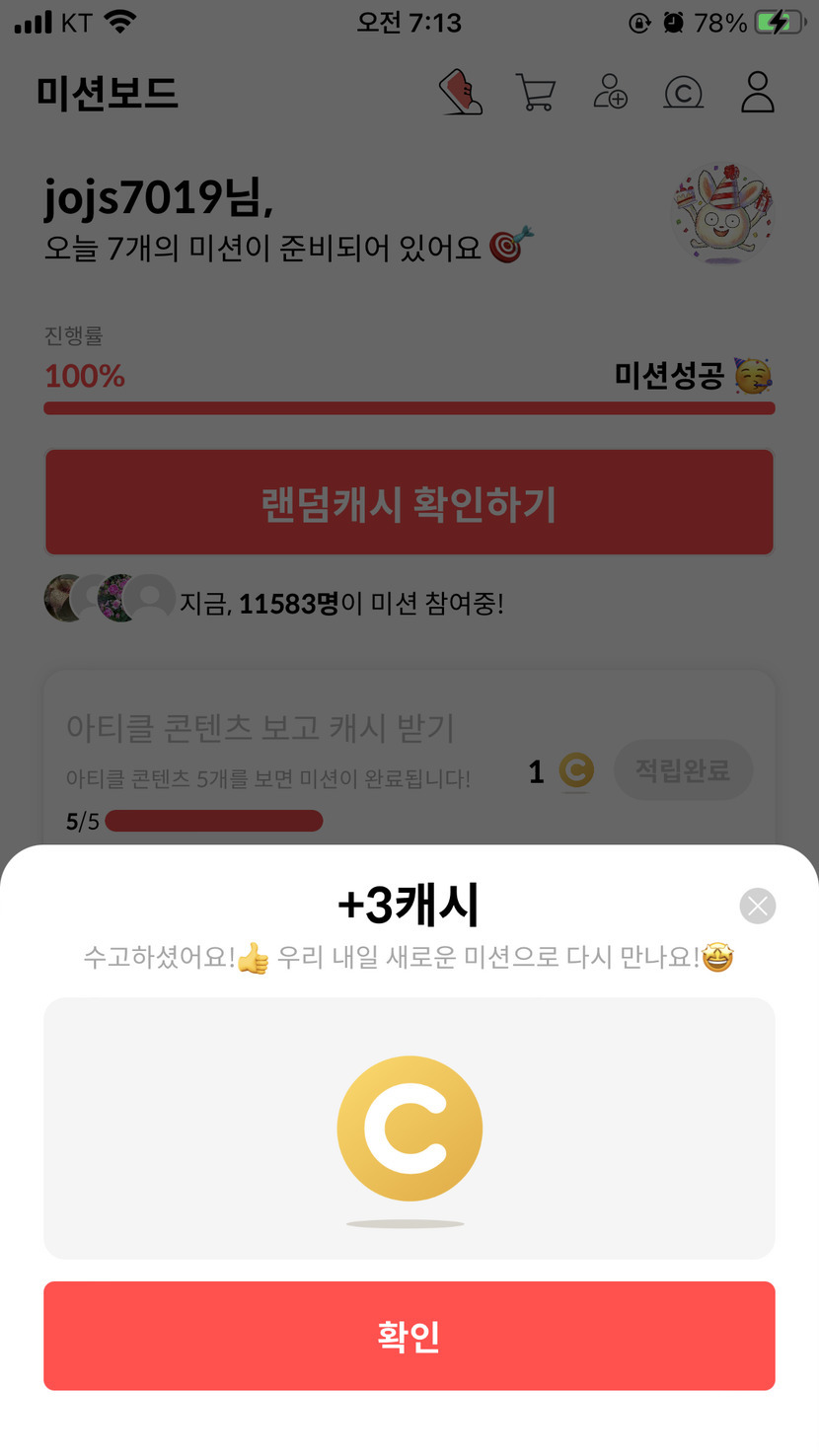 오늘도 3캐시 감사해요