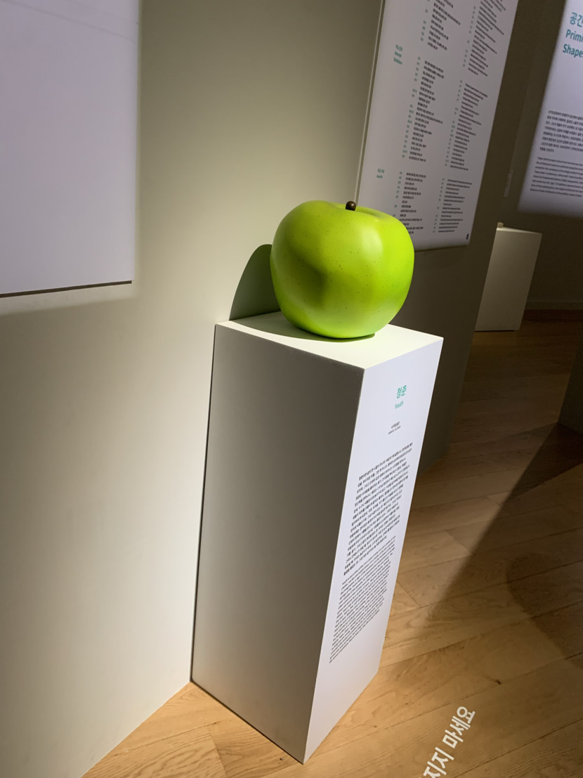 아직 다 익지 않은 청사과를 청춘으로 표현하여 곳곳에 청사과 모형품이 배치되어 있는걸 볼 수 있었어요.