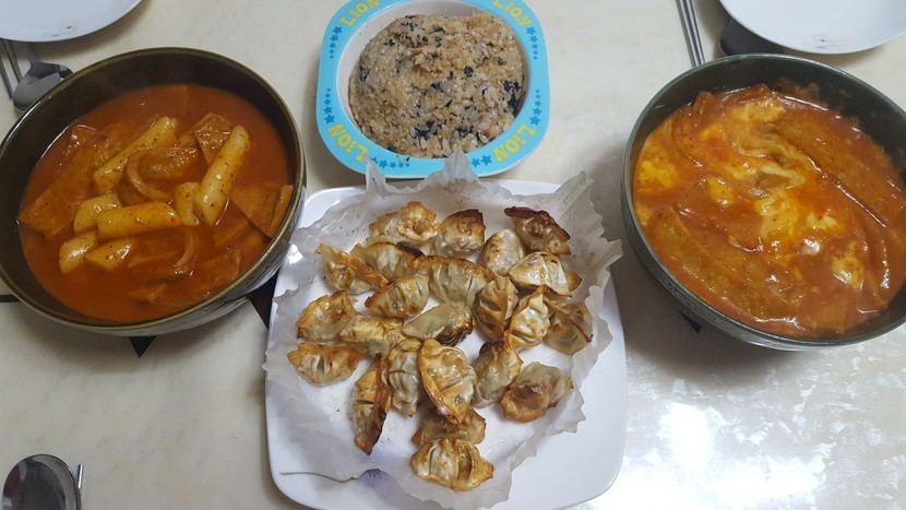 20.04.26 287 읽음 ☆☆ 일요일엔? 신전떡볶이 따라잡기^^☆☆ 햄마니와떡순이 구독하기 3 19 콘텐츠의 수익 28 일요일 점심은 역시 간단한게^^오늘은 신전떡볶이를 도전해봅니다고추장2 고춧가루3 후추1 올리고당2 설탕1 가장 중요한 카레가루1요기에 각자 입맛대로 가감하면 얼추 비슷^^참치에 김가루 마요네즈 간장 살짝 넣고 쓱쓱 비벼 밥도 준비물만두는 살짝 기름발라 에어프라이어에 돌려줍니다( 치킨링이나 김말이가 없어서 아쉬운대로 ㅠㅠ)한쪽은 피자치즈 올려 전자레인지 살짝 돌려주니 나름 근사한 엄마표 짝퉁신전 떡볶이 완성^^자!!이제 저녁엔 뭘 먹을거냐는데... ^^;; 19 0 / 300 입력