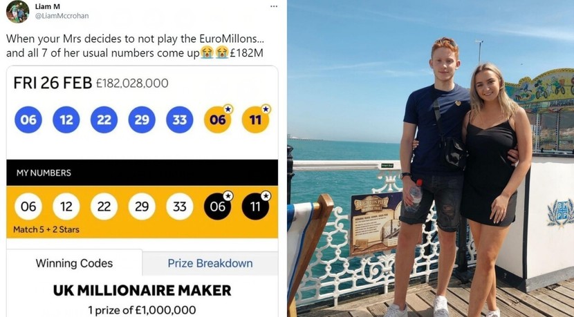 이들 커플은 5주간 같은 번호로 복권을 구매해오다가 마침내 1등 번호를 맞췄습니다. 당첨금은 총 1억8200만 파운드(약 3008억 원)에 달했습니다. 그러나 당첨금을 청구하기 위해 복권회사에 연락했을 때, 구매 이력이 없다는 답변을 받았습니다.