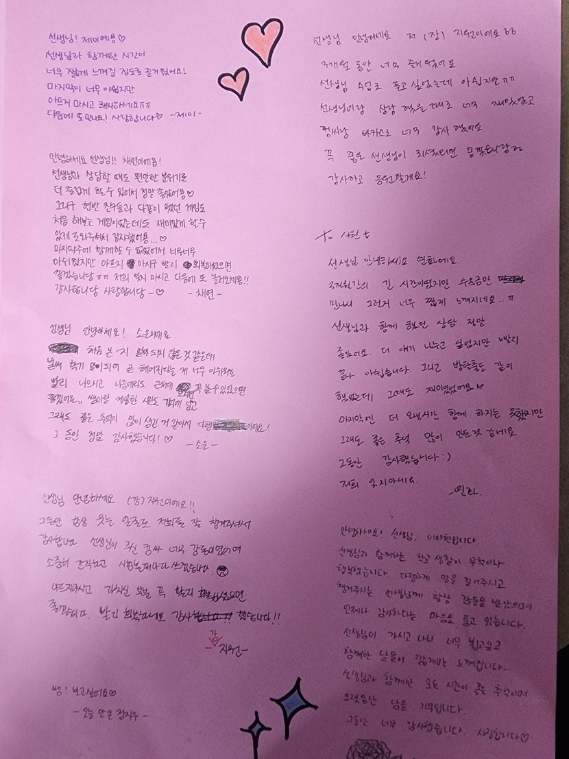 교생실습 마지막 날 준비한선물