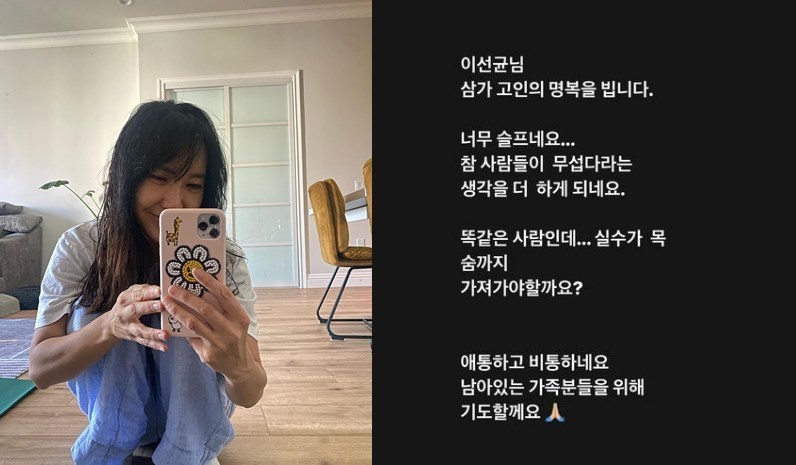 위키트리유리는 27일 자신의 SNS에 "이선균님 삼가 고인의 명복을 빕니다"라고 시작되는 글을 게재했다. 그는 “너무 슬프네요. 참 사람들이 무섭다는 생각을 더 하게됩니다”라고 말했다.