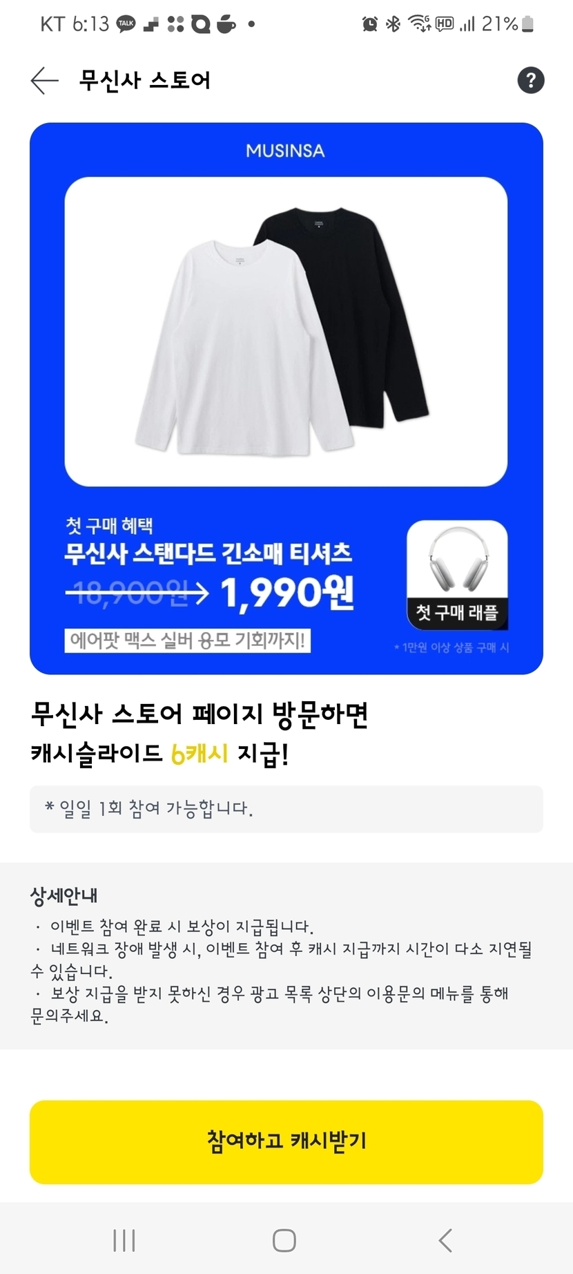 캐시적립 받으세요! 💰