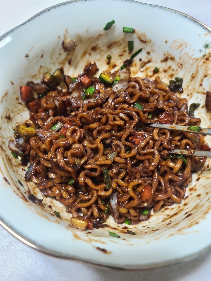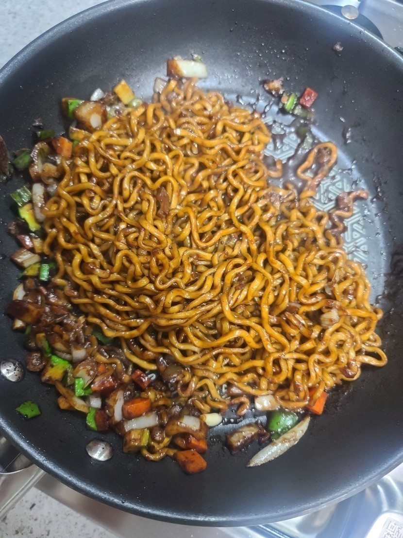20.04.28 367 읽음 오 호 야식~♡ 지안이꺼 구독하기 0 51 콘텐츠의 수익 39 살짝 배고파 야식 만들어 먹어요그냥 먹을수 없어 냉장고에 있는 야채 여러가지를 꺼내 깍두기 모양으로 작게 썰어놓은후 물끓이면 면하고 건더기 넣어 삶은후 조금 물남기고 체에 받쳐 찬물로 살짝 물 껴 얹어놓고 잠시대기야채는 살짝 볶으다 춘장넣고 섞고 면과 아까 남은 물좀 넣어주고 살짝 볶아주세요 그런다음 드실때 부추 살짝 올리고 고추가루도 좀 넣고 깨소금 넣어주면 끝 ~오~~~야채가 아삭하니 씹히고 맛나네요^^ 51 0 / 300 입력