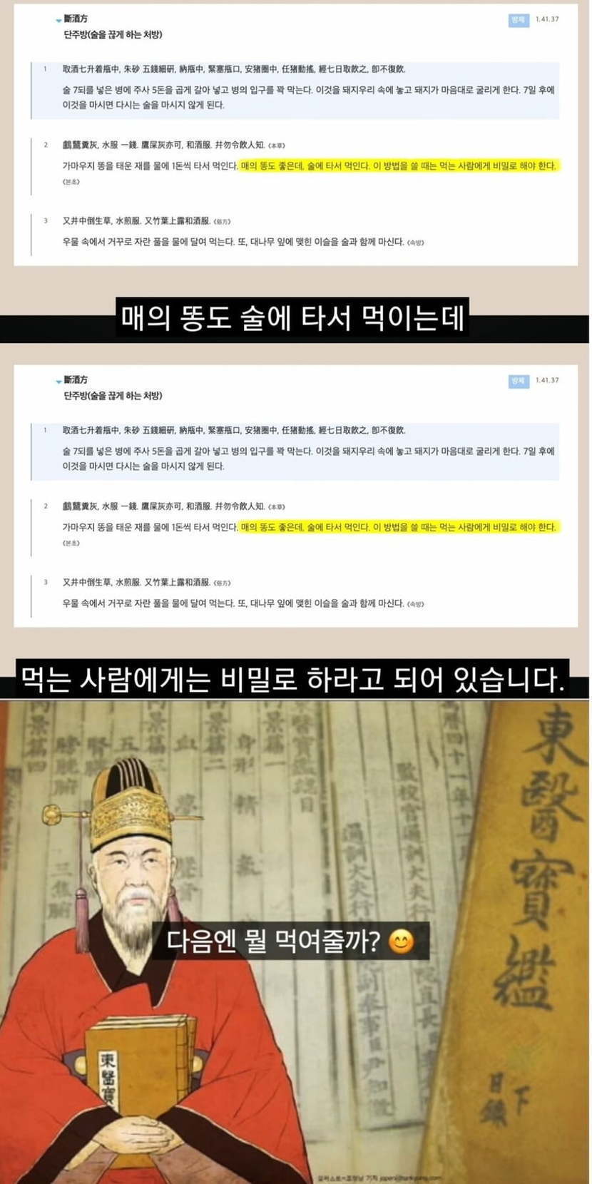 동의보감에 있다는 술을 끊게 만드는 비법..jpg