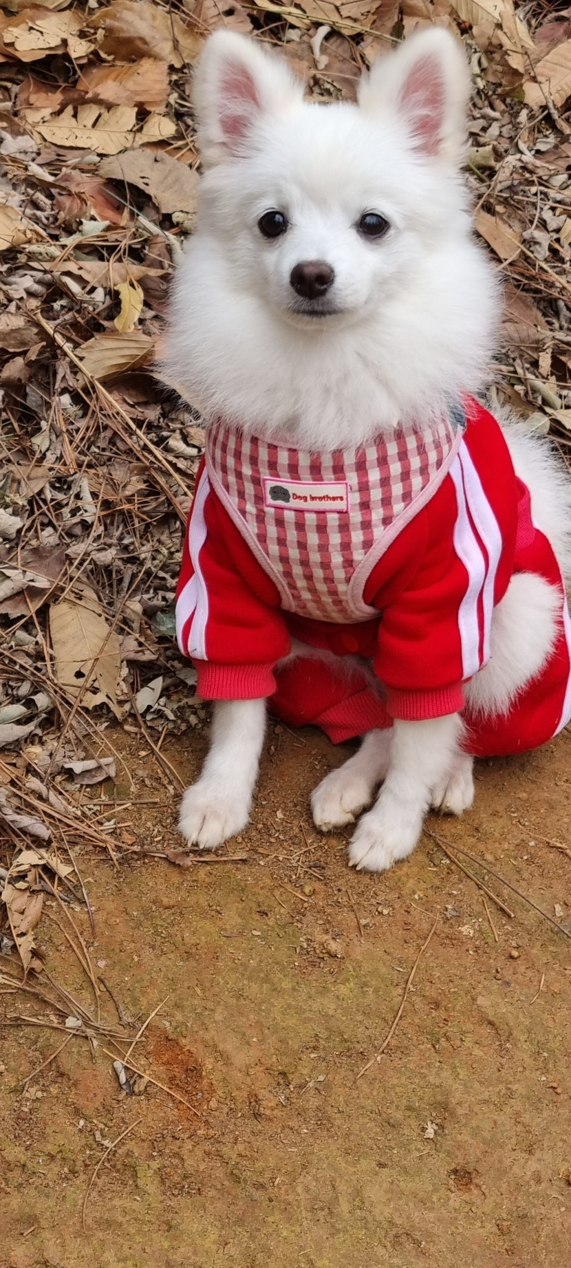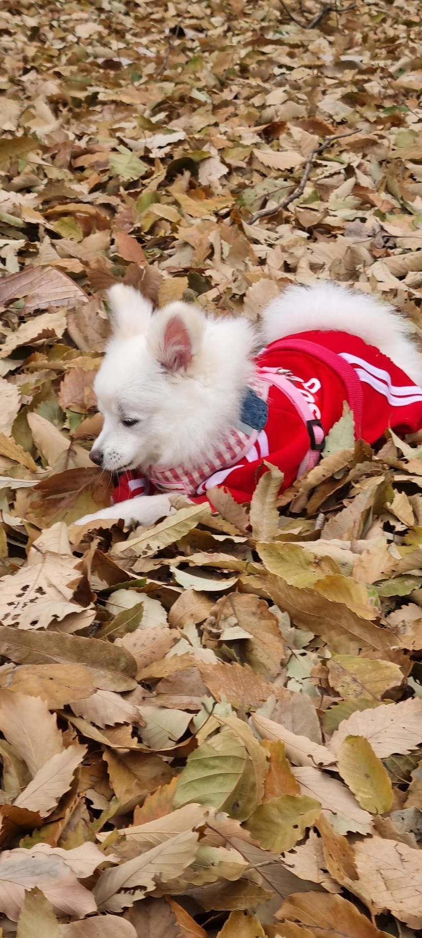 산책중 푹신한 낙엽에서 살짝 졸린 솜사탕