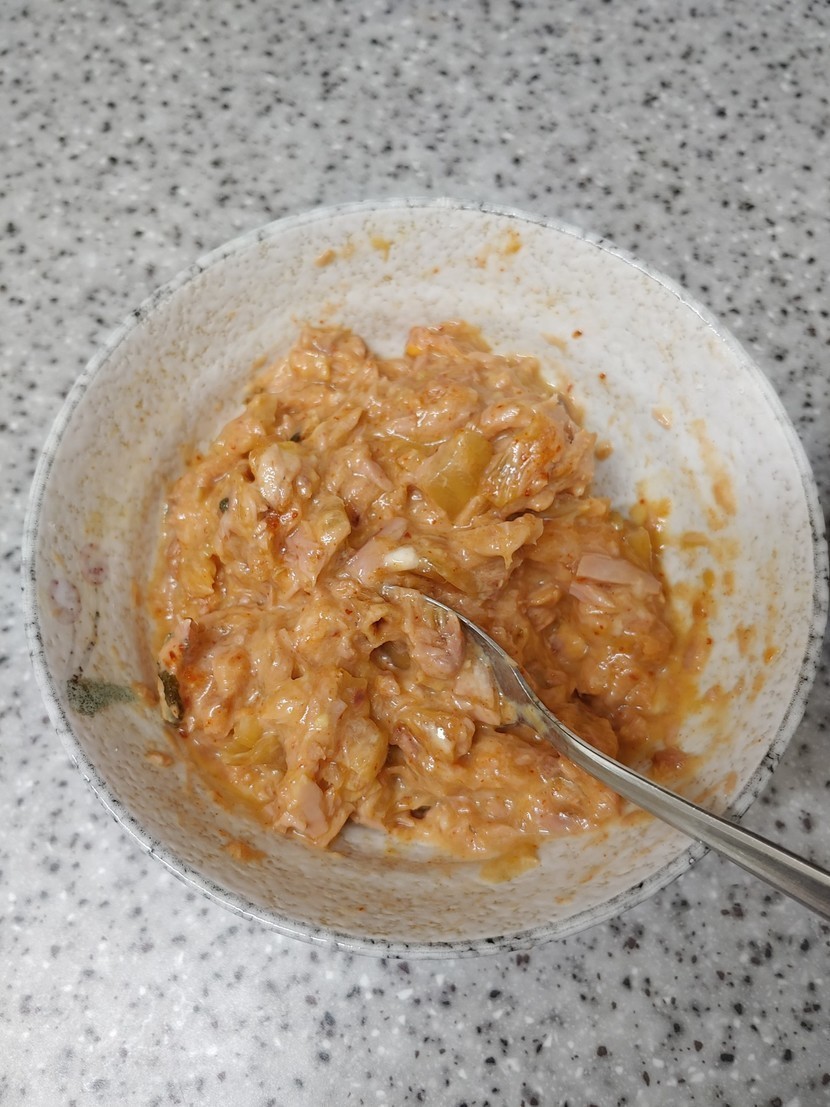 ์ฐธ์น๊น์น์ ์ฌ๋ฃ: ๋ฌ๊ฑ 1๊ฐ, ๊น์น ์กฐ๊ธ, ์ฐธ์น ํ์บ, ๋ถ์นจ๊ฐ๋ฃจ ์กฐ๊ธ