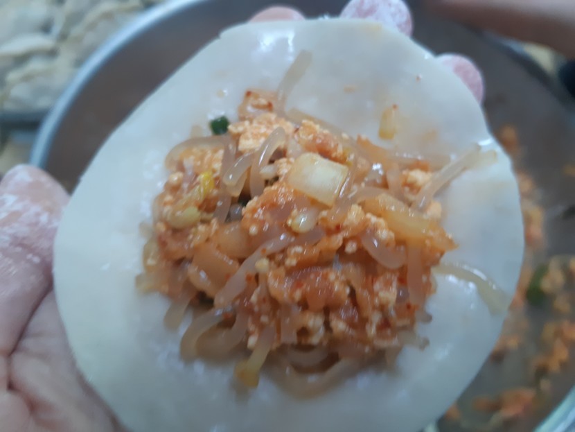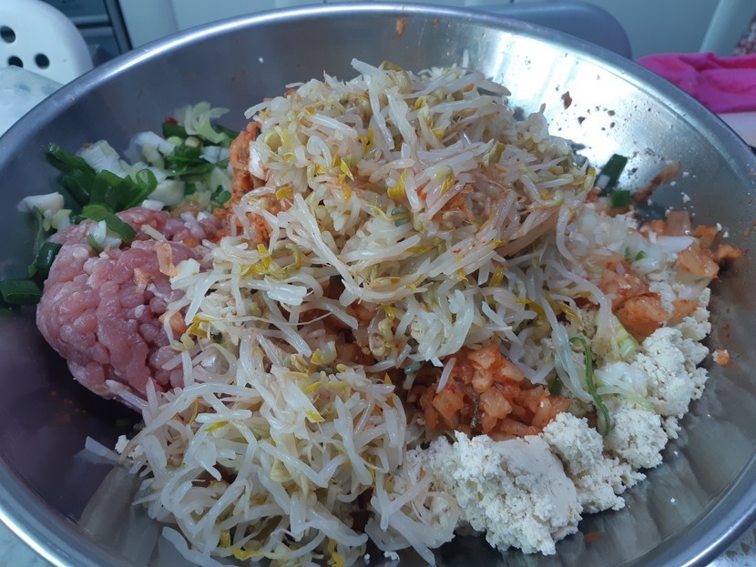 요즘 엄마가 맛있는 음식을 많이 해주시네여 오늘은 김치만두엿어요 재료는 두부, 김치, 숙주, 당면, 고기, 파랑 양파가 들어갓어요 재료들을 잘 섞어주었어요 여기서 팁 ! 김치를 꽉 짜주지 않으니 김치 맛이 더 많이 나면서 맛나더라구요 만두피는 삿습니다. 속을 듬뿍 넣어서 만두를 빚었는데맛있어 보이져 ? 이렇게 꽤 많이 나왓습니다 ㅎㅎ완성샷! 찜기에 넣어서 찐 후 맛을 봣는데 우아 !!! 엄청 맛나요간장에 찍어서 먹으니 정말 맛있습니다 이번 연휴에 집에서 가족끼리 만들어 보세요 ~