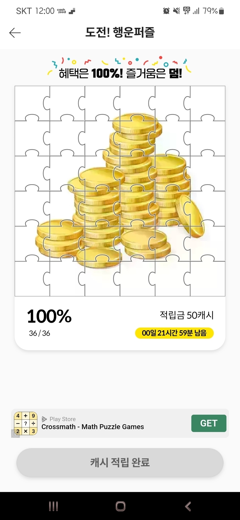 50캐시 퍼즐성공!