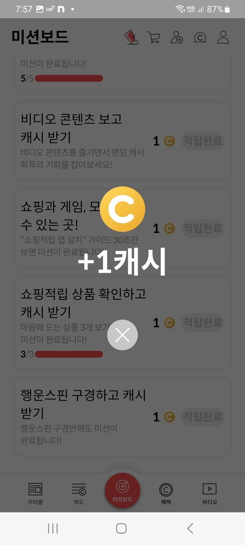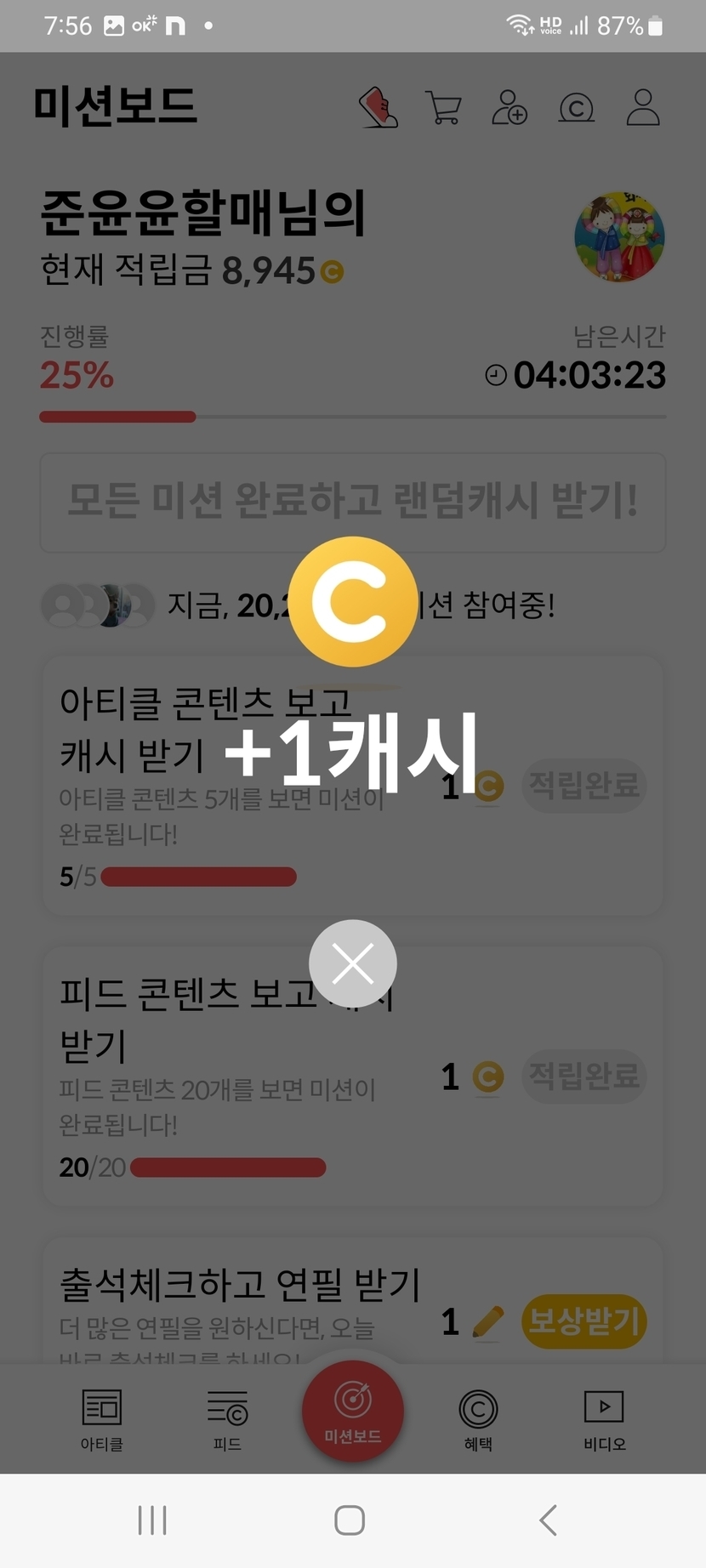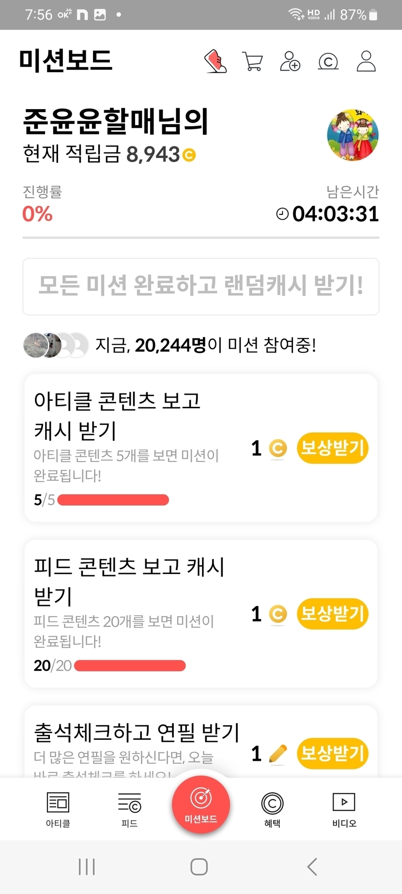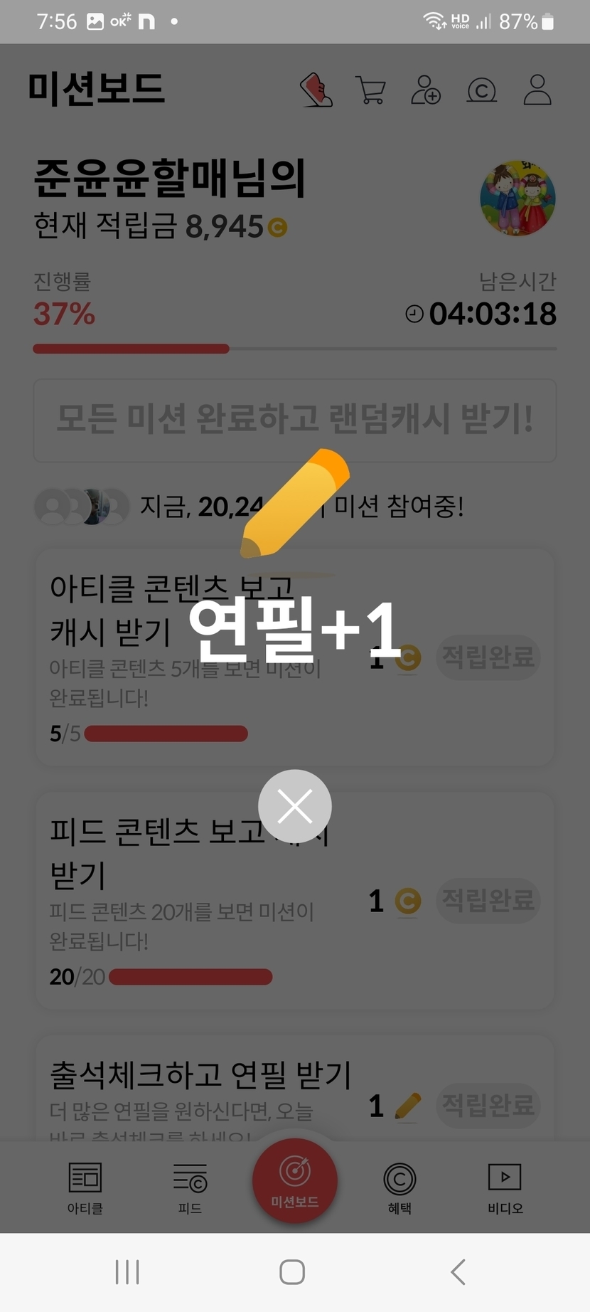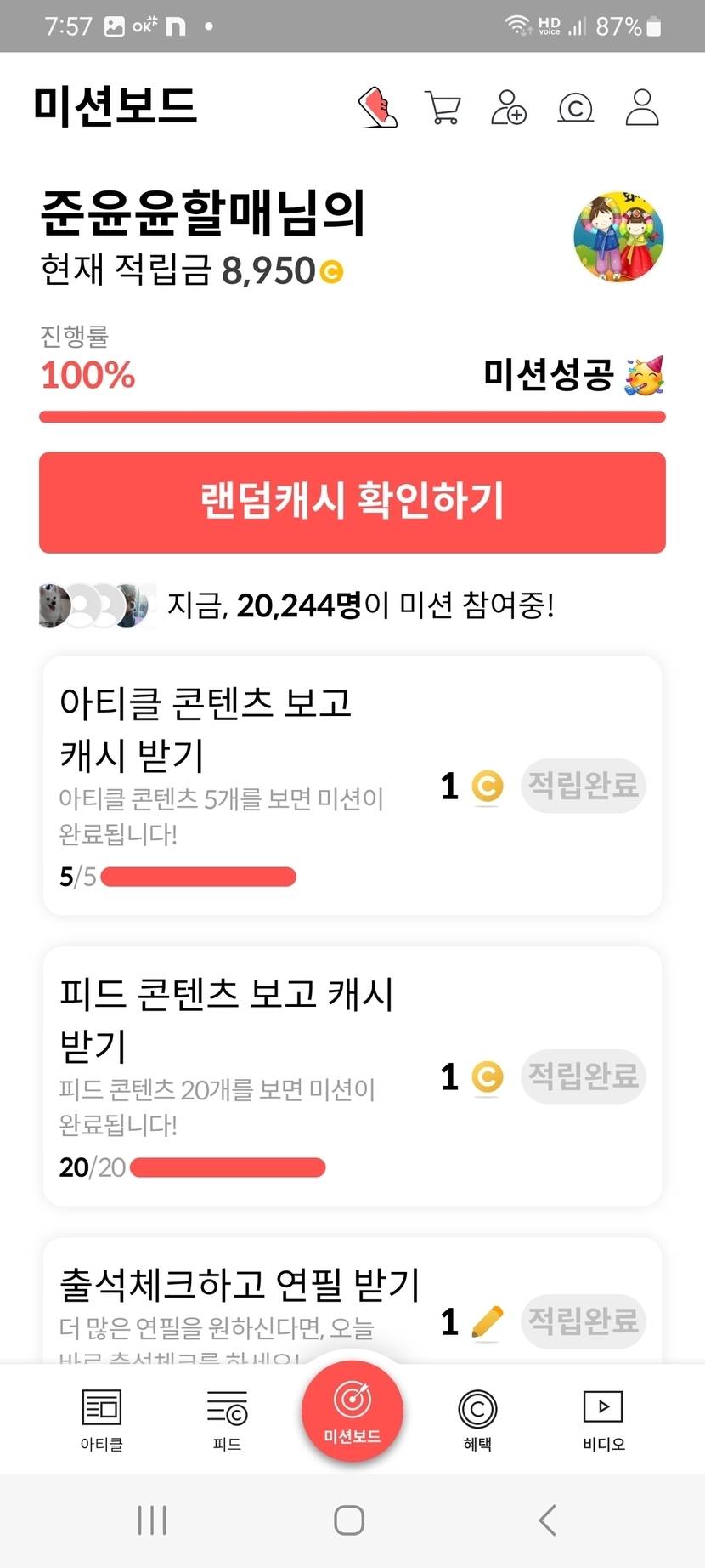 오늘의 미션보드 완료