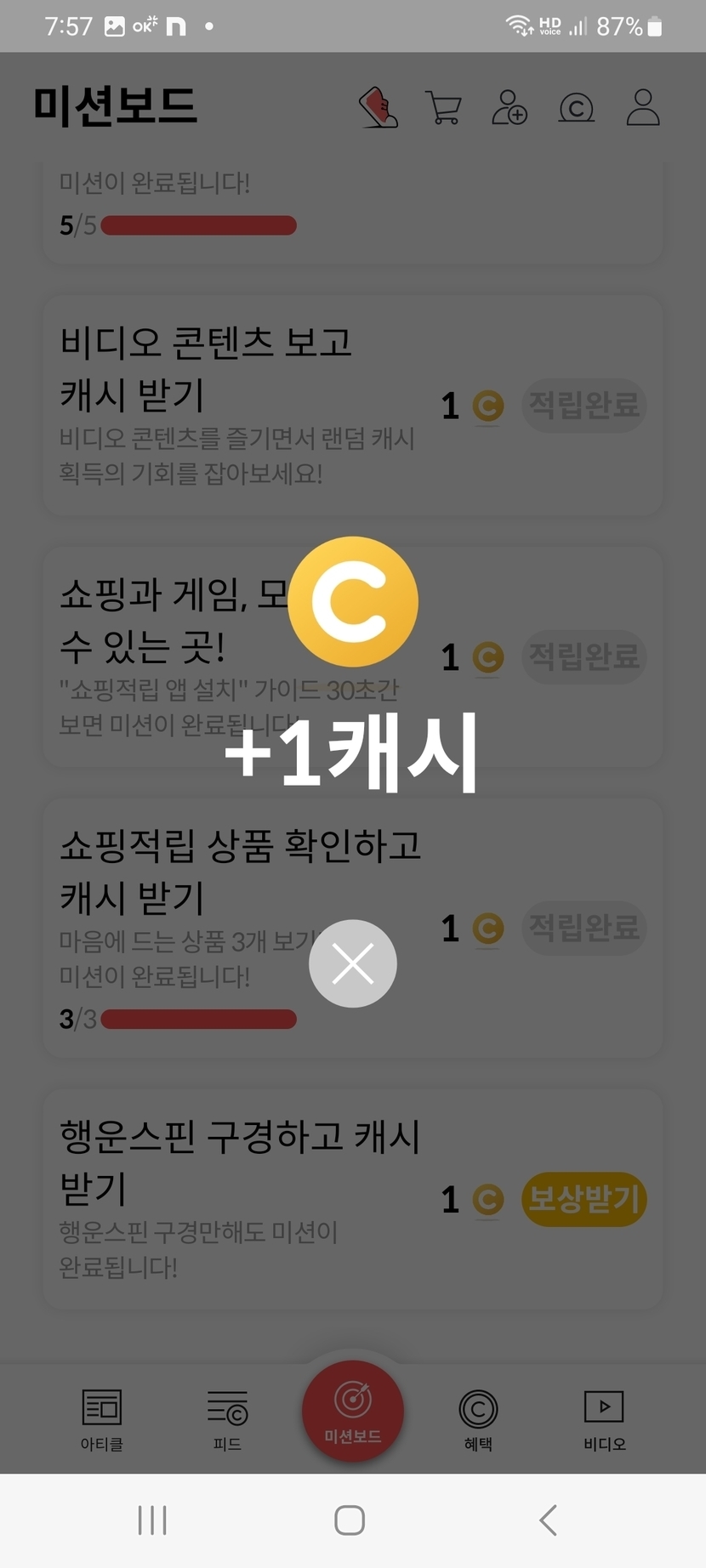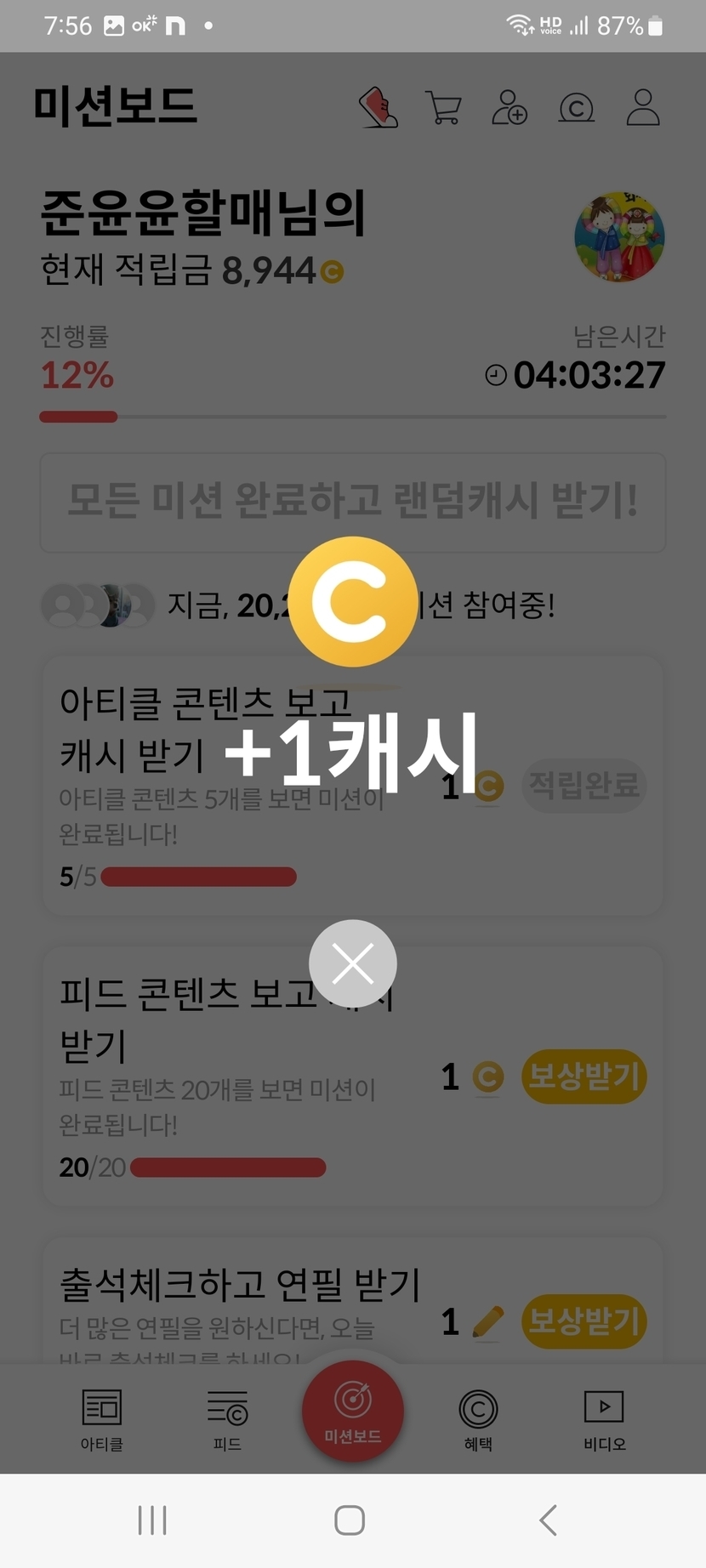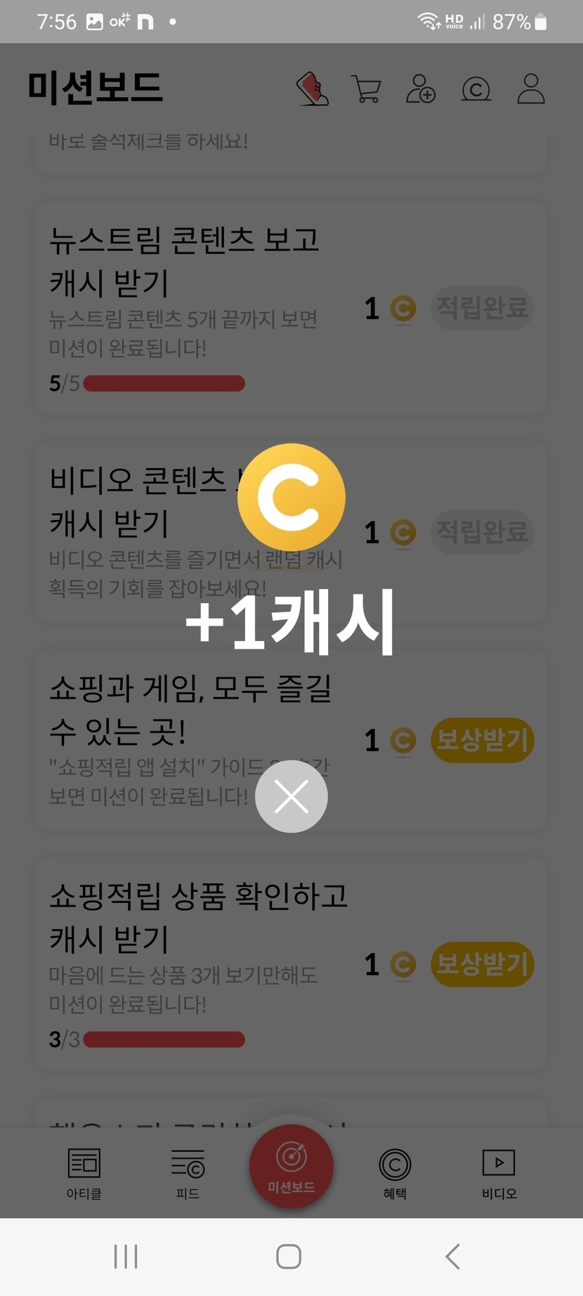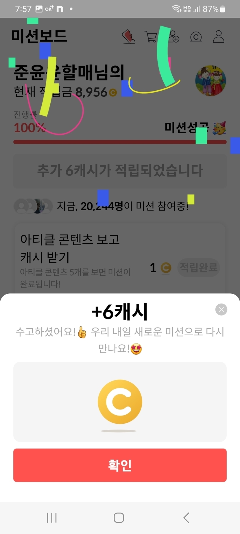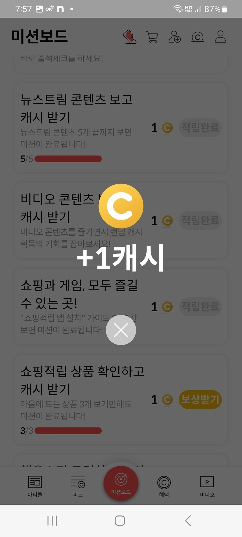 오늘의 미션보드 완료