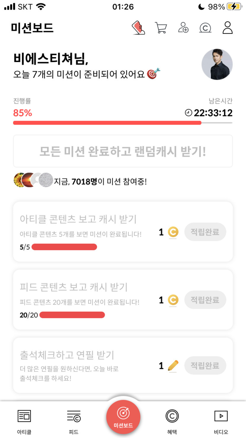 24.02.08 75 읽음 2월 8일 캐시피드 미션 비에스티쳐 구독하기 22 23 콘텐츠의 수익 2 오늘 캐시피드 미션입니다.미션 수행차 올리네요.캐시 많이 받을수 있었으면 좋겠습니다:) 23 0 / 300 입력