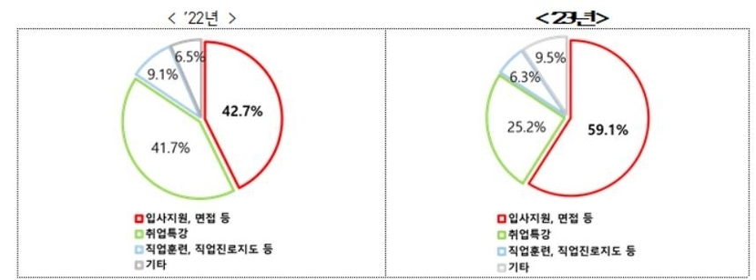 재취업률은 2008년에 최고 수준인 38.8%를 기록한 후 30%대를 유지하다 2017년부터 30% 아래로 떨어져, 2019년에는 25.8%까지 낮아졌다. 이후 2020년 26.8%, 2021년 26.9%, 2022년 28.0%로 조금씩 개선돼 왔다.