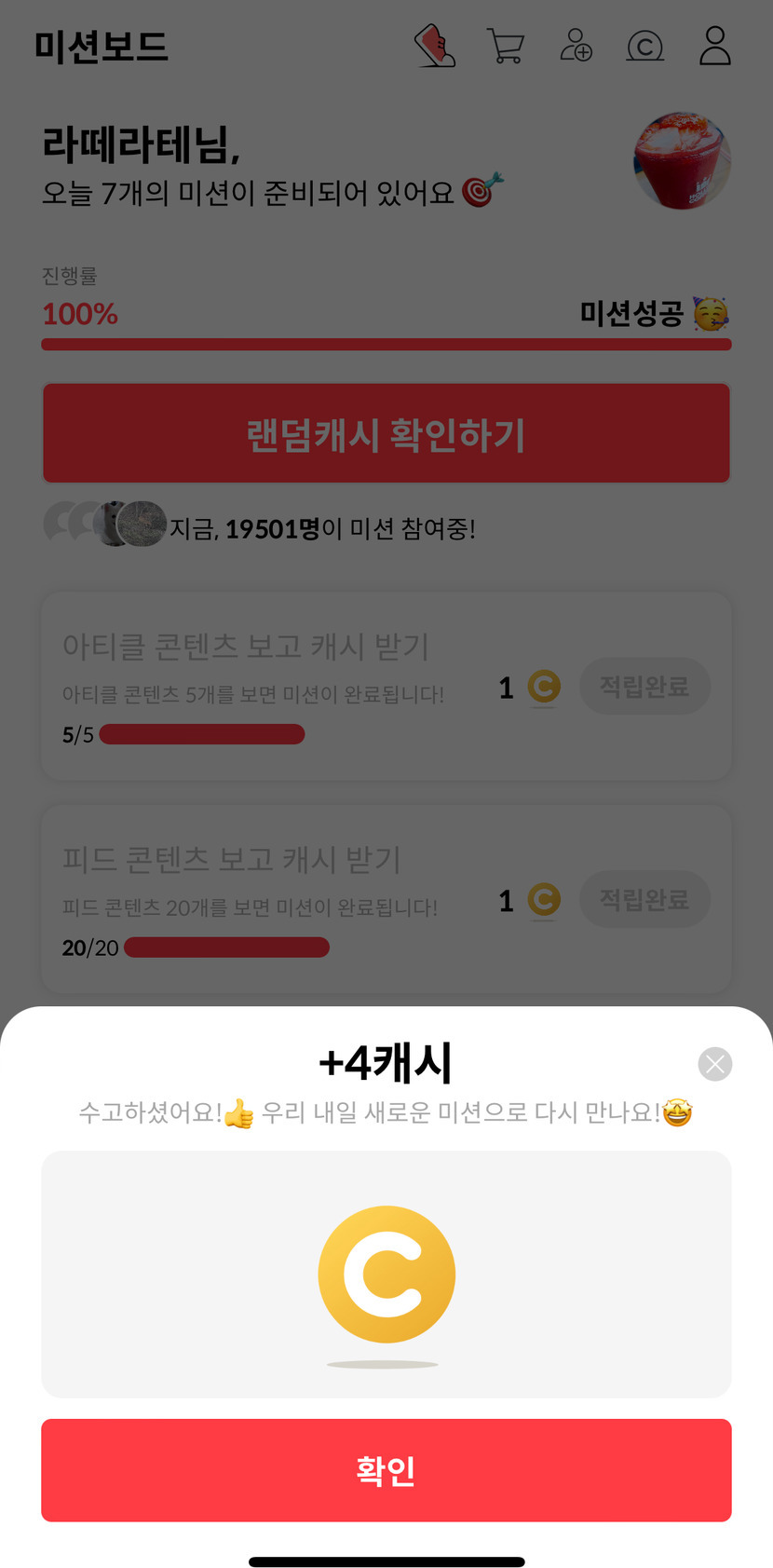 오늘 랜덤캐시 4캐시
