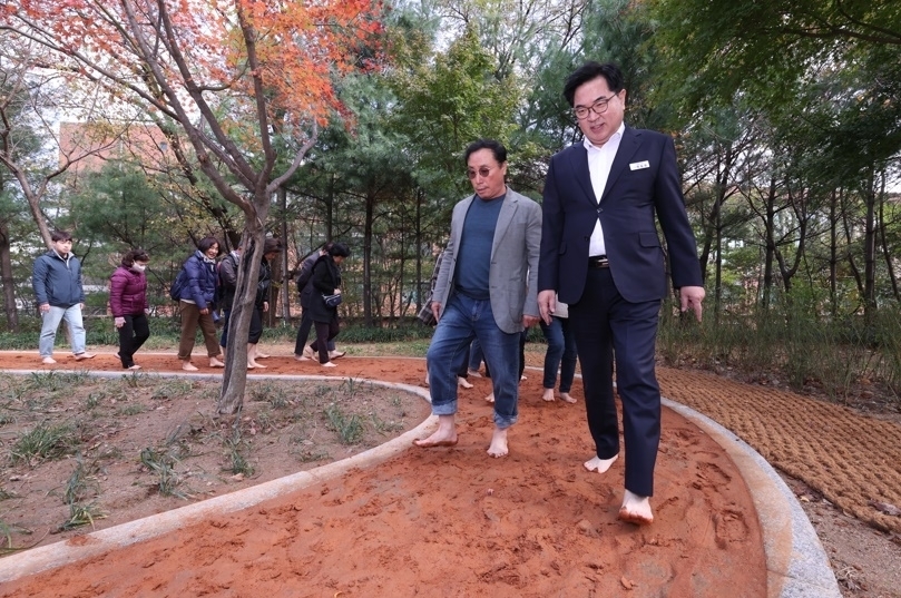 구는 '1동 1맨발 황톳길 조성'을 목표로 구민들이 집 앞 공원에도 맨발 걷기를 할 수 있도록 황토 산책로를 확충하고 있다.