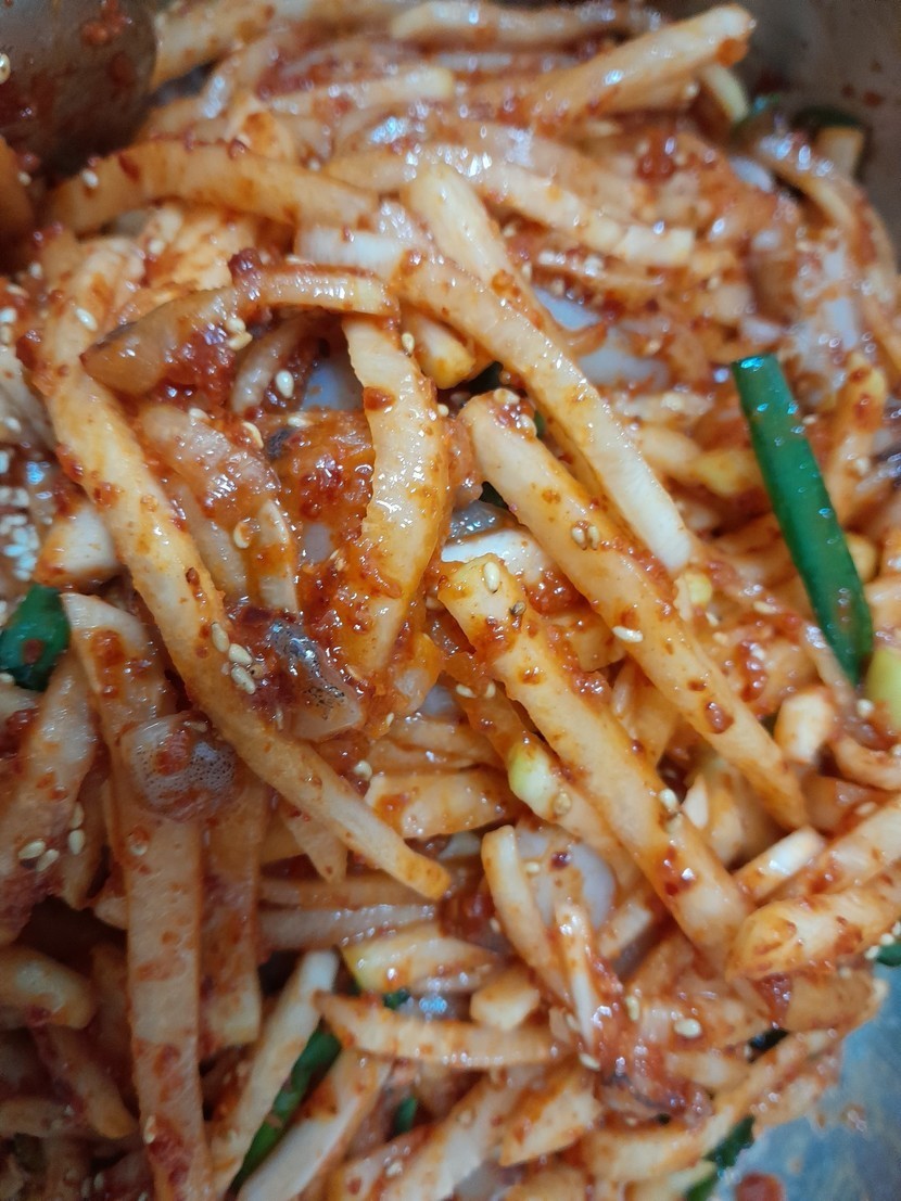 오늘아침에 무 채썰어 오징어넣고