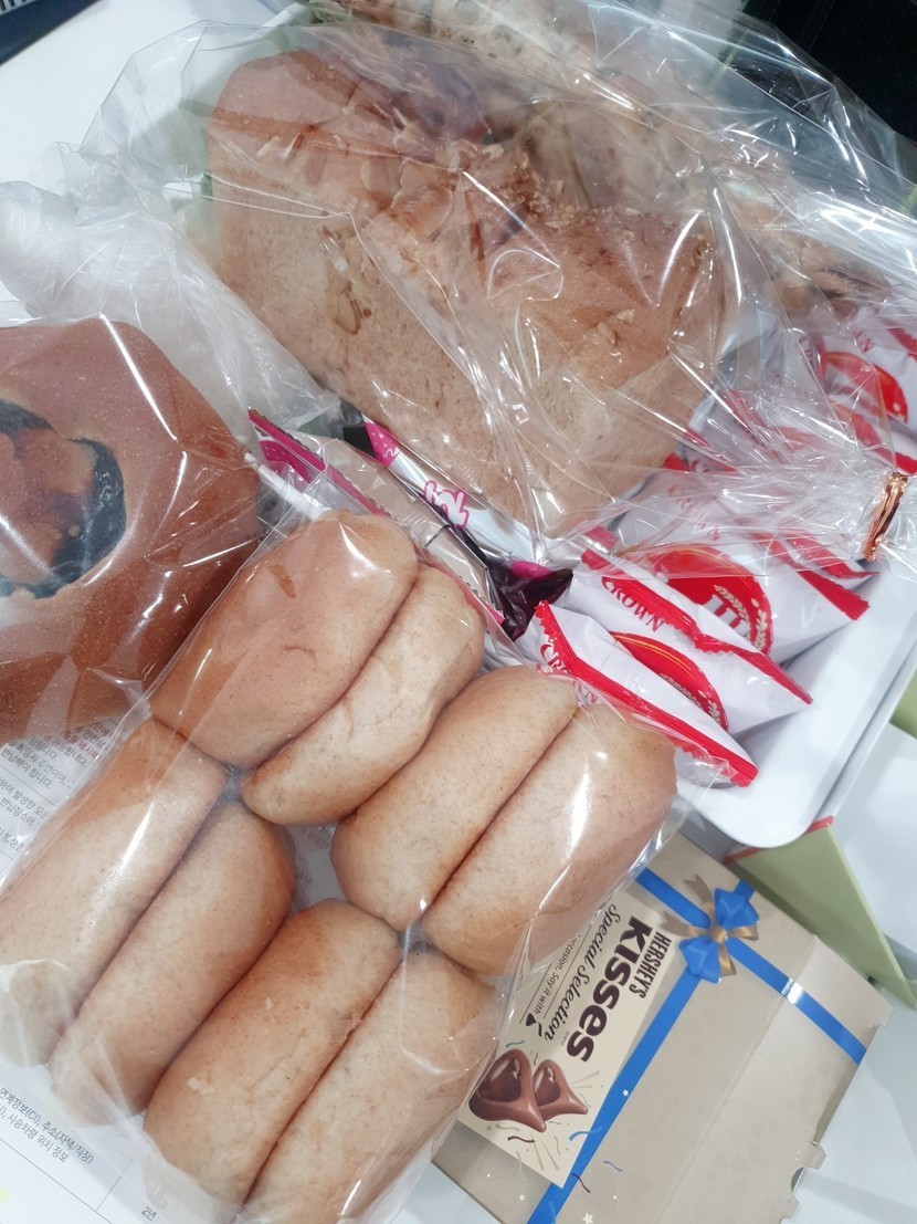어제 발렌타인데이라고 초콜렛도 받고 빵도 받았어요