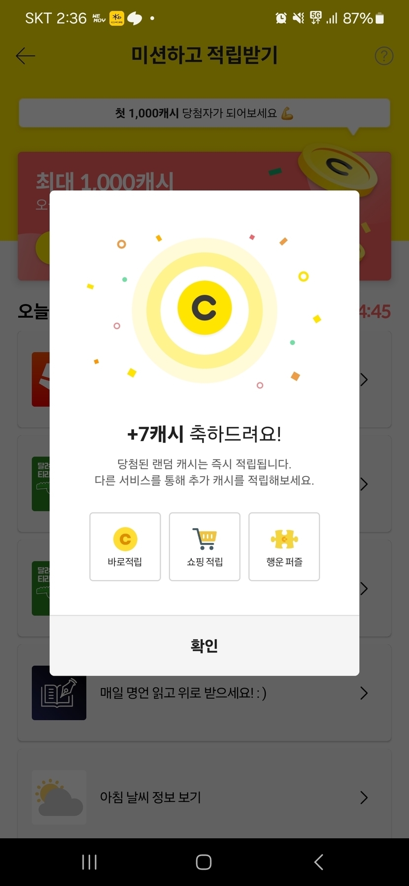 미션하고 적립받기